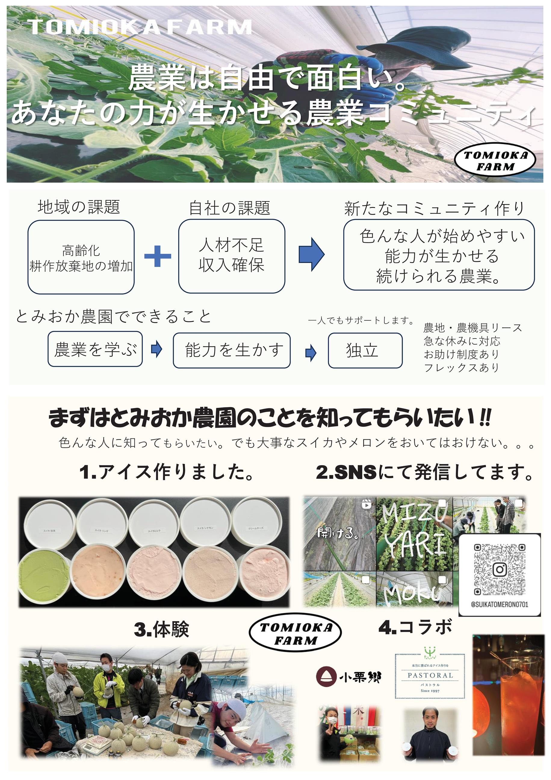 | 富岡 涼太 | とみおか農園 | 農業(スイカ・メロン生産) |
